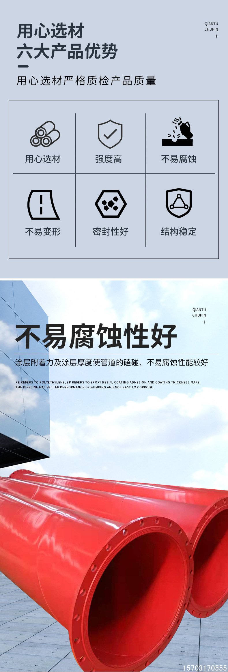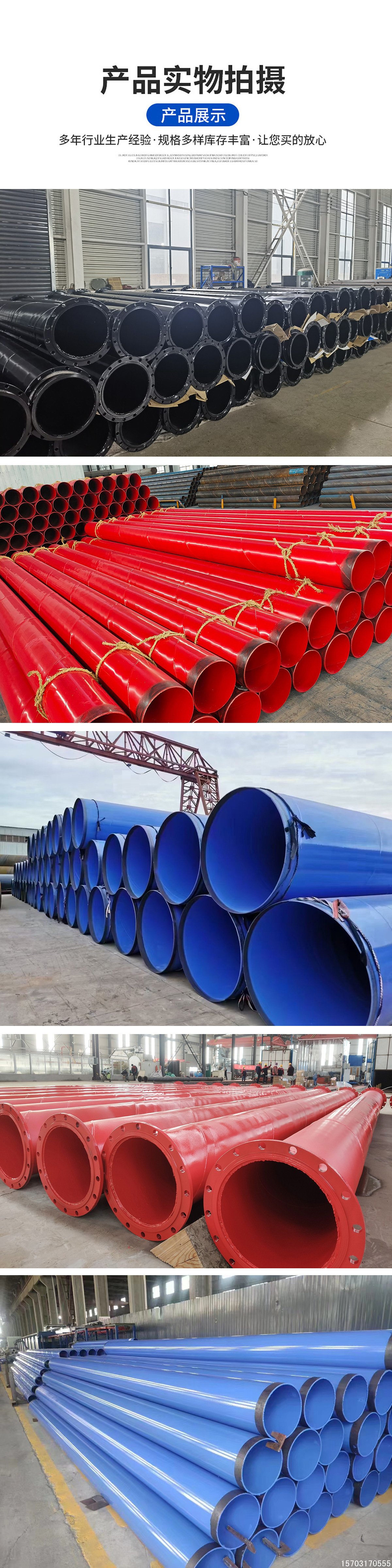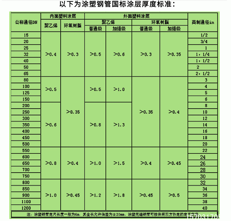 • 涂层厚度:聚乙烯(PE)涂层厚度一般在 400um-1000um 之间,环氧树脂(EP)喷涂厚度通常为 100um-400um,不同的涂层厚度可根据具体使用场景进行选择。